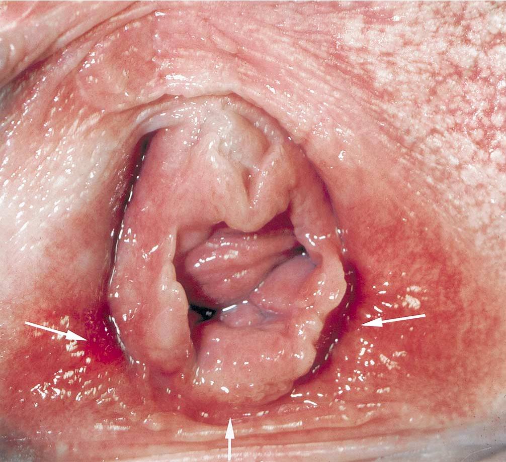 Vulva, xarici cinsiyyət orqanının adıdır. Bu zaman qızlıq pərdəsi, vulva ilə vagina arasında çox vaxt səpgilər, qızartılar olur. Üstəlik, bu nahiyyə istənilən toxunuşa son dərəcə həssasdır. Bu zaman cinsi əlaqə ya çox ağrılı olur və ya ümumiyyətlə mümkün olmur.