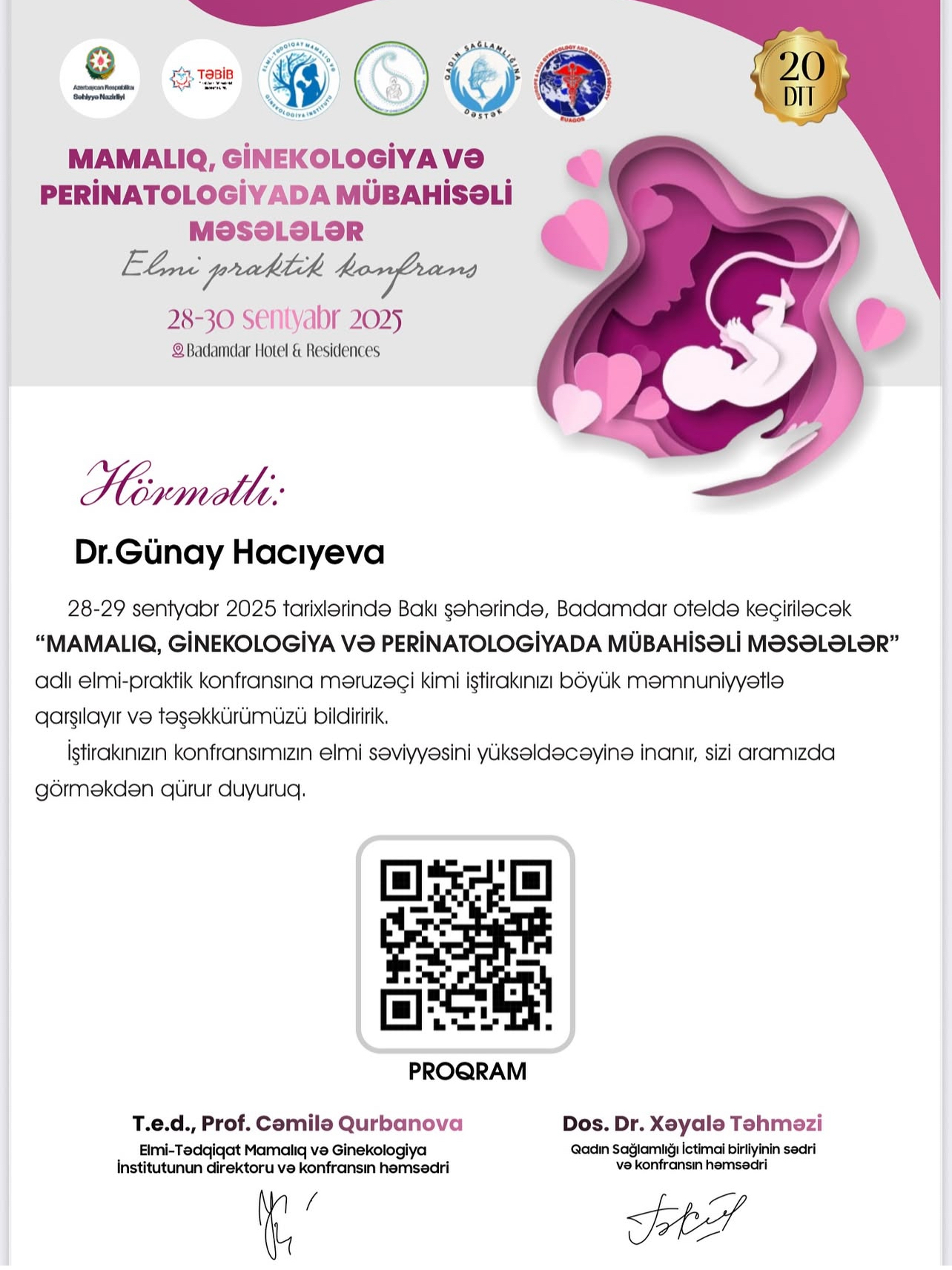 MAMALIQ, GİNEKOLOGİYA VƏ PERİNATOLOGİYADA MÜBAHİSƏLİ MƏSƏLƏLƏR - ELMI PRAKTIK KONFRANS